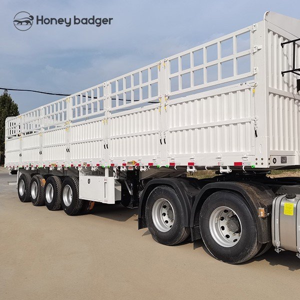 4 axle fence cargo semi-trailer is mainly used for agricultural product transportation: fence semi-trailer is usually used to transport vegetables, fruits, grains and other agricultural products. The fence design provides good ventilation, keeping the goods fresh and preventing spoilage.